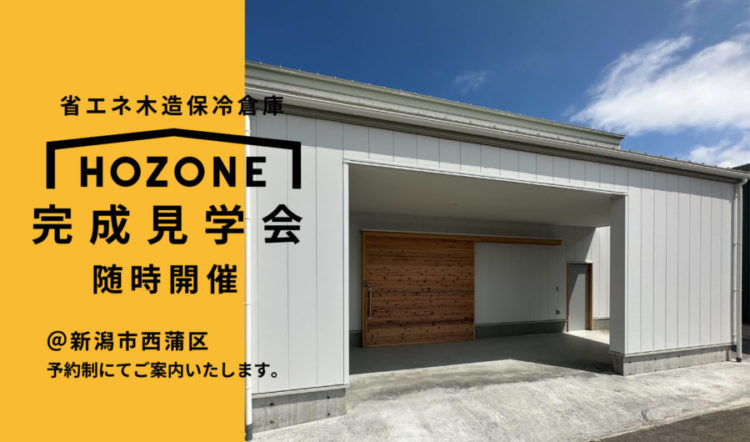 省エネ木造保冷倉庫「HOZONE(ホゾン)」のモデル倉庫がこの度新潟市西蒲区に完成いたしました。